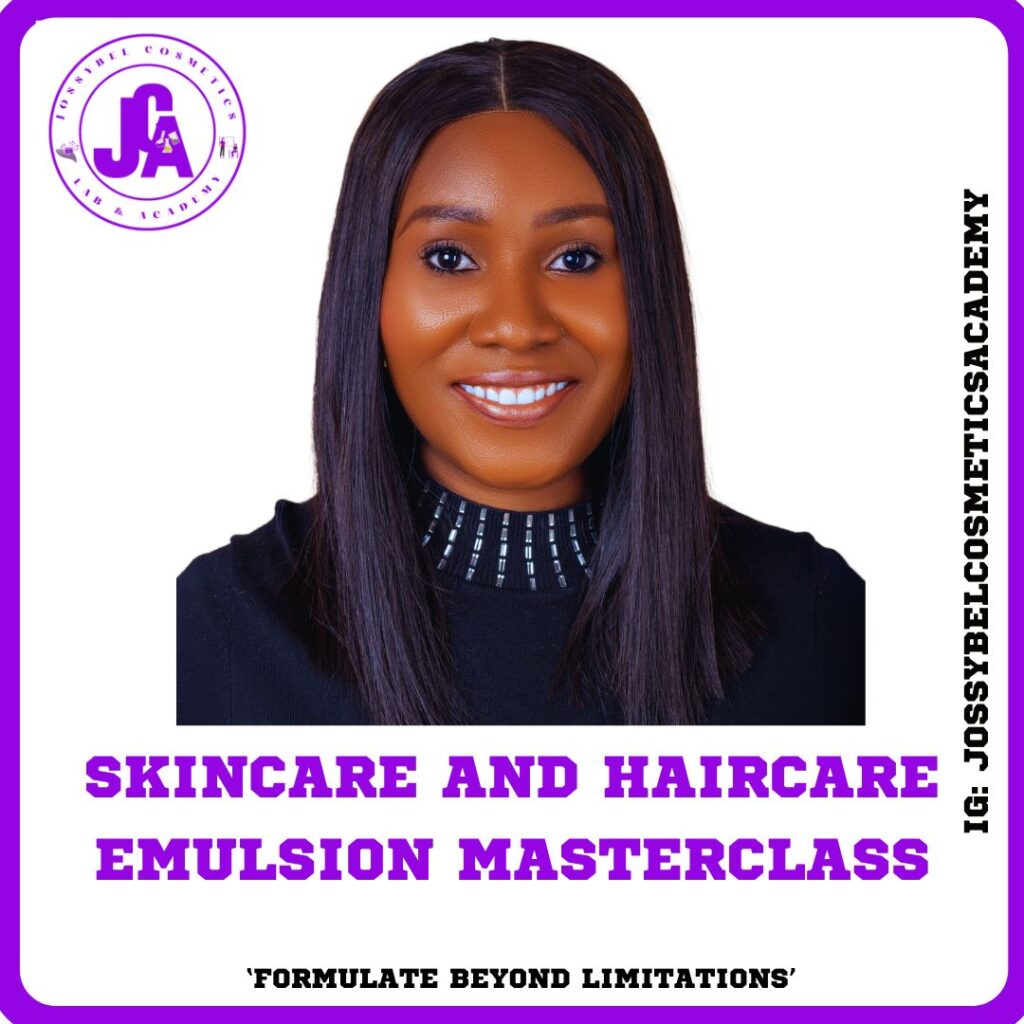 Whether for profit or personal use, we at Jossybel, our dream is to make a difference in cosmetics development in Nigeria. We are committed to developing effective scientific-backed cleansing, exfoliating, improving and moisturizing products. Creating awareness about formulating and using cosmetics ingredients the right way, without skin bleaching. We are also committed to teaching others how to formulate these products effectively using international standards, whether for profit or personal use